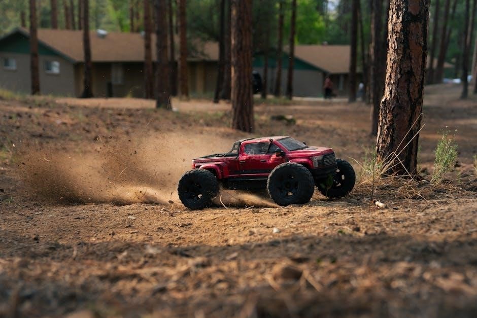 To conduct a range test, power on the transmitter and receiver. With the model on a stand, walk away approximately 30-50 feet. Continuously move controls (throttle, steering) and observe the transmitter’s signal strength indicators; If signal is lost, return closer. Repeat until reliable control is maintained at maximum desired range, ensuring safe operation.
